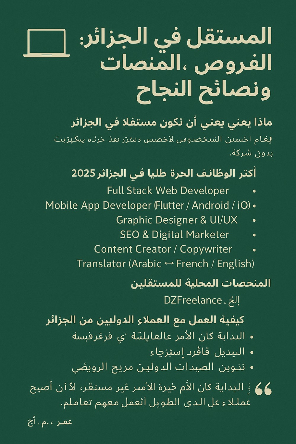 If you're looking to become a freelancer in Algeria, now is the right time. The digital economy is expanding, platforms are accessible, and clients are open to remote talent. But success requires: